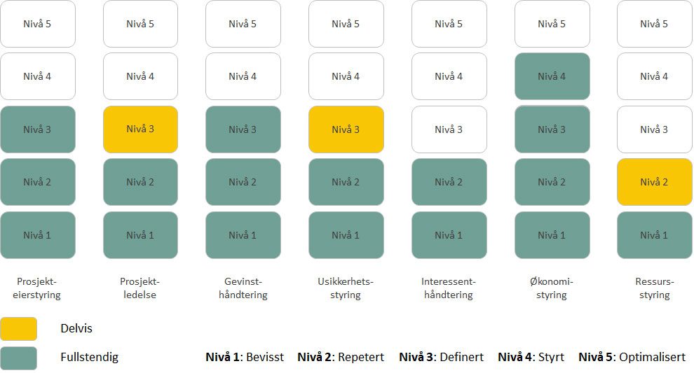 Her kan en bevisstgjøring av egen prosjektmodenhet bidra til å identifisere områder som trenger forbedring for å nå de strategiske målene.